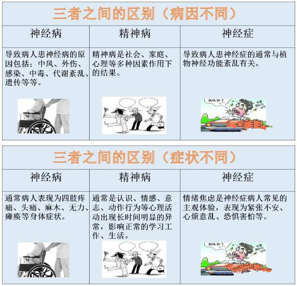 由此可見(jiàn),神經(jīng)病、神經(jīng)癥和精神病是不同范疇的疾病,其發(fā)病原因、臨床表現(xiàn)等均不一樣,所以在日常生活中應(yīng)該把這幾種概念搞清楚。