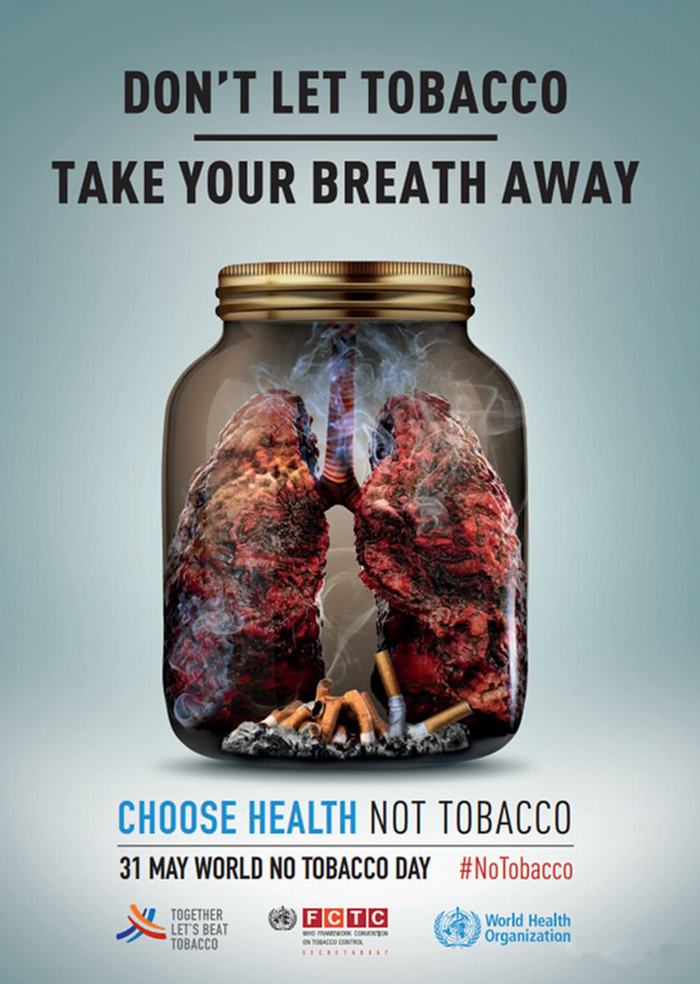 5月31日是世界無煙日,由世界衛(wèi)生組織(WHO)于1987年發(fā)起,旨在呼吁全球?qū)煵萘餍袠O其致命影響的重視。2019年世界無煙日的主題為“煙草與肺部健康”。該活動將提高人們對以下問題的認識:煙草對人們肺部健康的負面影響,從癌癥到慢性呼吸道疾病,肺對所有人的健康和福祉發(fā)揮著根本作用。該運動還呼吁采取行動,倡導(dǎo)有效的政策以減少煙草消費,并讓多個部門的利益相關(guān)者參與煙草控制的斗爭。