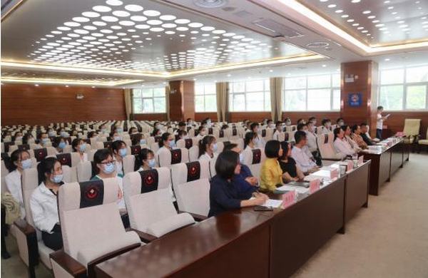 2021年9月2日,2021~2022年度見習生歡迎儀式暨崗前培訓會在外科樓第四學術廳隆重召開。科研教學管理中心韓曉芳主任、辦公室李鵬主任、科教部王紹輝副部長、保障部寇東亮副部長、心血管病院黨文婷總護士長、科教部樊高俠教學主管和各教研室主任70余人出席了此次培訓會。本次會議由見習生帶教班主任李翠老師主持。