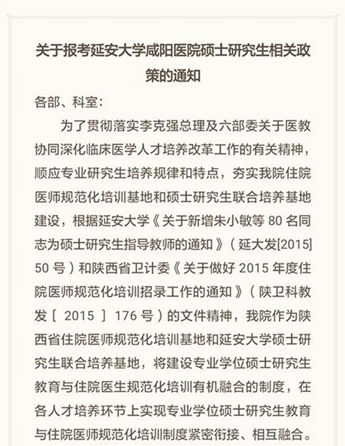 關(guān)于報考延安大學(xué)咸陽醫(yī)院碩士研究生相關(guān)政策的通知