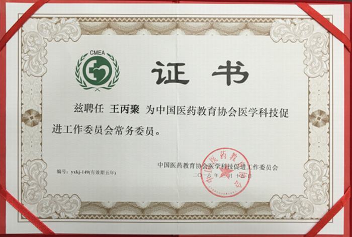 2016年3月15日,從中國(guó)醫(yī)藥教育協(xié)會(huì)醫(yī)學(xué)科技促進(jìn)工作委員會(huì)獲悉,我院神經(jīng)內(nèi)科十三病區(qū)主任、科教部部長(zhǎng)王丙聚被聘為“中國(guó)醫(yī)藥教育協(xié)會(huì)醫(yī)學(xué)科技促進(jìn)工作委員會(huì)常務(wù)委員”!