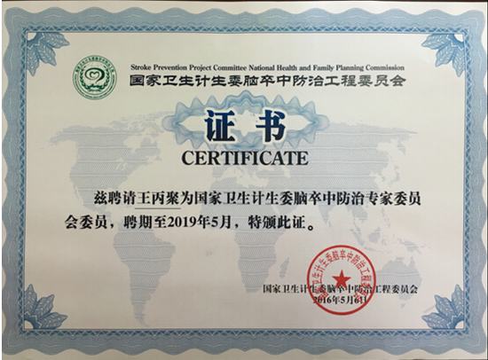 熱烈祝賀王丙聚同志成功當(dāng)選為國家衛(wèi)生計生委腦卒中防治專家委員會委員