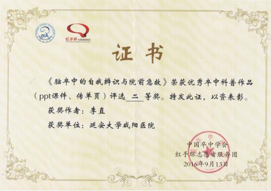 近日,從中國卒中學(xué)會紅手環(huán)志愿者服務(wù)團傳來喜訊,我院腦血管病院在中國卒中學(xué)會優(yōu)秀卒中科普作品征集活動中表現(xiàn)出色,由神經(jīng)內(nèi)科貴賓病區(qū)李直醫(yī)師創(chuàng)作的《腦卒中的自我辨識與院前急救》和《卒中的誘因與預(yù)防》分別榮獲優(yōu)秀卒中科普作品評選二等獎!
