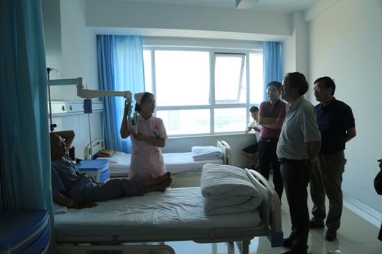 他們先后參觀了腦血管病院大廳、高壓氧治療室、神經內科VIP病區(qū)、康復治療中心一區(qū)、康復治療中心二區(qū)、科教樓臨床技能培訓中心及多媒體教室等相關部門,感受并詳細了解我院智慧醫(yī)療建設情況,對我院安裝的床旁智慧信息管理系統及醫(yī)院的信息化建設給予了很高的評價;并就康復方向護理人員的培養(yǎng)和社會需求同我院康復科梁麗娜主任進行了深入的交流;他們對我院先進的管理理念、人性化的大樓設計、優(yōu)美舒適的住院環(huán)境、合理的病區(qū)管理、新技術新項目引進等多方面給予了高度肯定,對我院的科研教學投入、教學環(huán)境和教學設施給予了高度的贊揚。