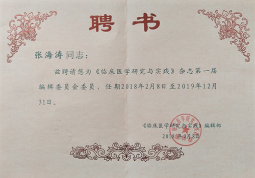 ——我院張海濤副院長(zhǎng)、王丙聚副院長(zhǎng)獲聘為《臨床醫(yī)學(xué)研究與實(shí)踐》雜志第一屆編輯委員會(huì)委員