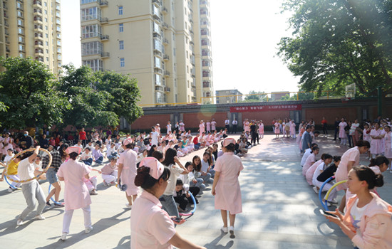 2019年5月9日,延安大學(xué)咸陽醫(yī)院科研教學(xué)管理中心和護(hù)理部共同舉辦了“凝心聚力,青春飛揚(yáng)”為主題的“5.12”國際護(hù)士節(jié)慶?;顒?dòng)。我院護(hù)理見習(xí)生參加了慶?;顒?dòng),并作為參賽隊(duì)伍參加了趣味運(yùn)動(dòng)。趣味運(yùn)動(dòng)引來了不少來“杏林苑”鍛煉的病患及家屬駐足觀看,現(xiàn)場異常熱鬧。
