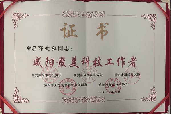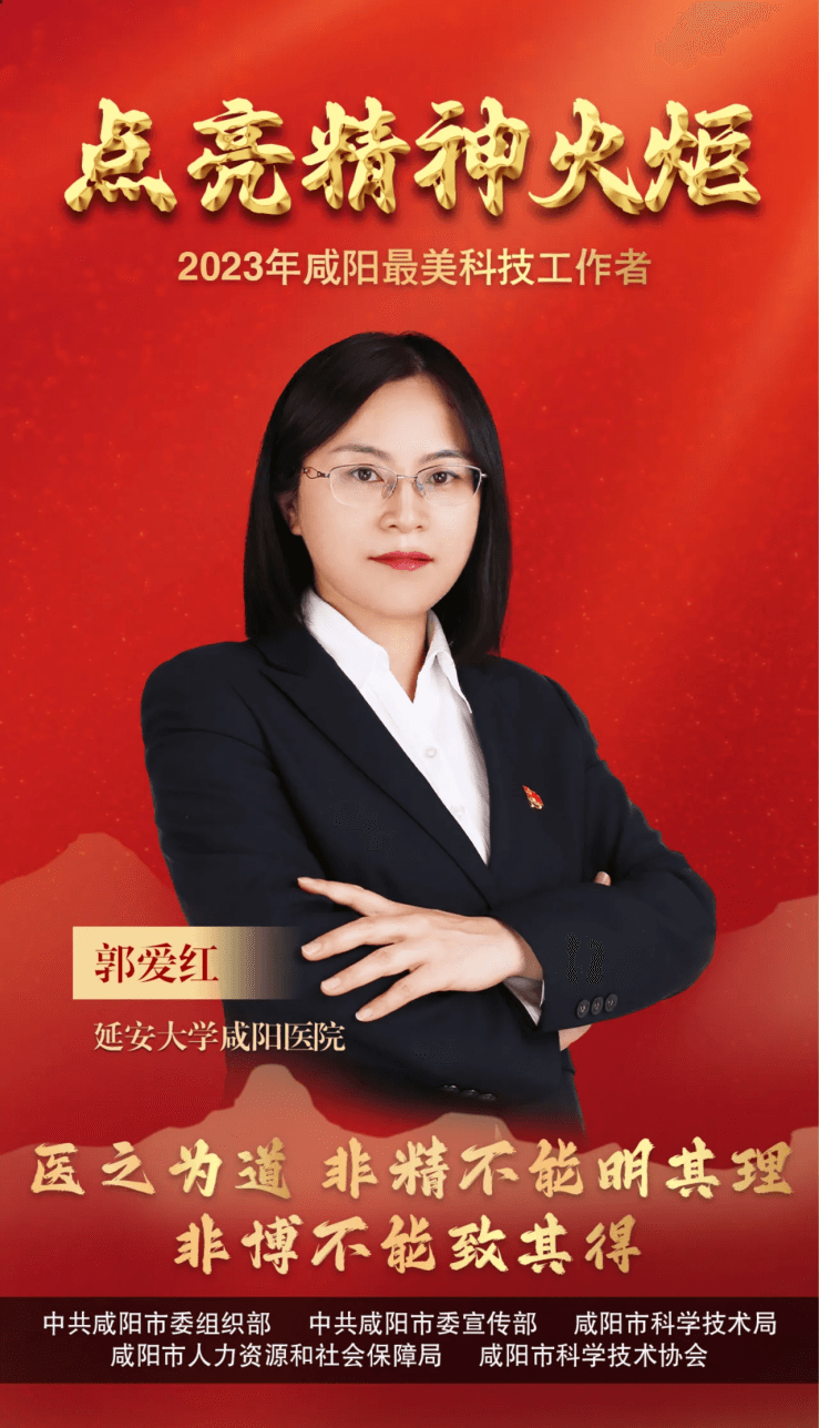 5月31日,由咸陽市委組織部、市委宣傳部、市人社局、市科技局、市科協(xié)、陜西工業(yè)職業(yè)技術(shù)學(xué)院共同主辦的2023年“全國科技工作者日”咸陽主場活動暨2023年咸陽“最美科技工作者”和“典贊•科普咸陽”科普人物發(fā)布典禮在陜西工業(yè)職業(yè)技術(shù)學(xué)院舉辦,我院神經(jīng)內(nèi)科十七病區(qū)(原神經(jīng)內(nèi)科VIP一病區(qū))郭愛紅主任獲得2023年度咸陽市“最美科技工作者”榮譽稱號。
