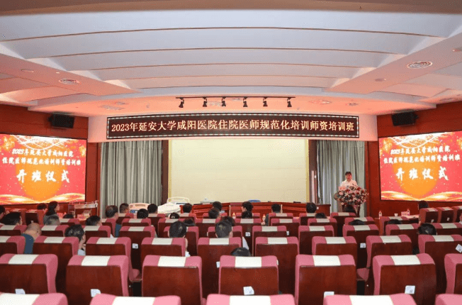 為加強我院住院醫(yī)師規(guī)范化培訓(xùn)師資隊伍建設(shè),提高內(nèi)涵質(zhì)量建設(shè)。2023年7月26日-28日,“2023年延安大學(xué)咸陽醫(yī)院住院醫(yī)師規(guī)范化培訓(xùn)師資培訓(xùn)班”在腦血管病院三樓第三學(xué)術(shù)廳隆重召開。咸陽市衛(wèi)生健康委員會李建業(yè)副主任、科教宣傳科王聯(lián)國科長,陜西省人民醫(yī)院教學(xué)處馬東瑞處長、西安市中心醫(yī)院全科醫(yī)學(xué)科王琦俠主任、延安大學(xué)咸陽醫(yī)院吳棟梁常務(wù)副院長、腦血管病院趙雄飛院長、外科病院姚春和院長、內(nèi)科病院張玉河副院長、韓曉芳調(diào)研員、各專業(yè)基地管理人員、住培帶教老師、教學(xué)秘書等200余人參加了此次培訓(xùn)。開班儀式由科研教學(xué)管理中心陳青副主任主持。