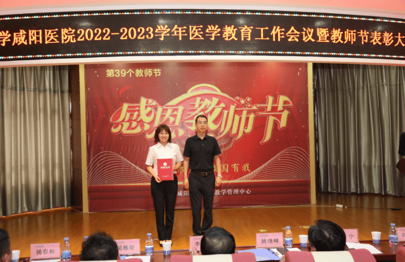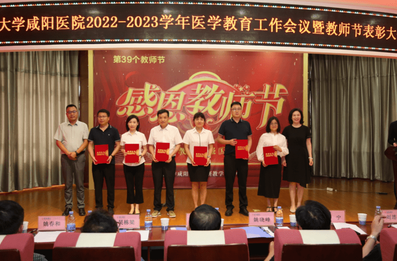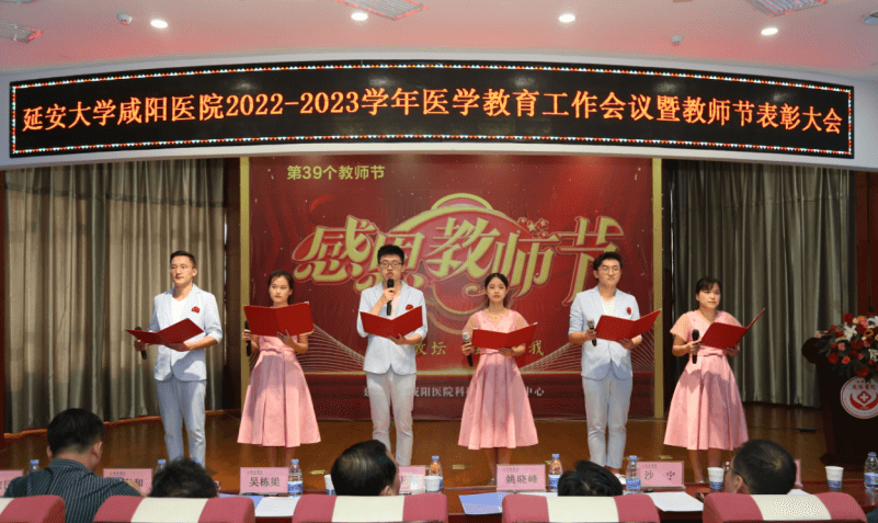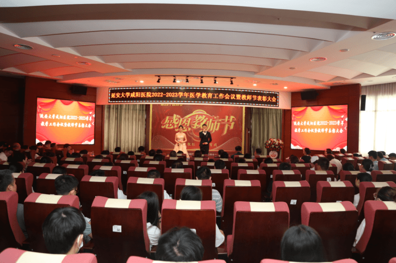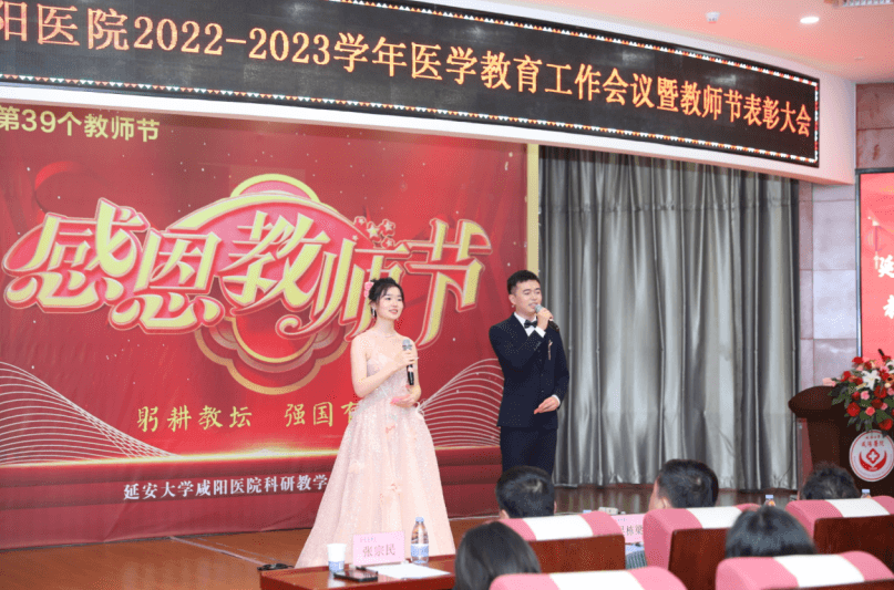 為熱烈慶祝第39個教師節(jié),2023年9月8日下午,我院在腦血管病院第三學(xué)術(shù)廳隆重舉行了 “2022-2023學(xué)年醫(yī)學(xué)教育工作會議暨教師節(jié)表彰大會”。精誠醫(yī)療管理集團(tuán)主席李衛(wèi)軍、延安大學(xué)咸陽醫(yī)院院長姚曉峰、常務(wù)副院長吳棟梁、行政副院長兼工會主席沙寧、外科病院副院長姚春和、院長助理劉連鋒、院長助理張宗民、劉貝磊副總會計師、院長助理巨濤、內(nèi)科病院副院長張玉河、科研教學(xué)管理中心副主任陳青、調(diào)研員韓曉芳、口腔病院副院長韋彥鋒、精神心理病院副院長胡曉科、各職能部門負(fù)責(zé)人、臨床帶教老師、住培醫(yī)師(含專碩研究生)、實習(xí)生代表等共200余人進(jìn)行現(xiàn)場觀看,本次會議由延安大學(xué)實習(xí)生安磊、武樂樂主持。