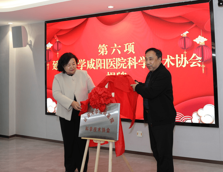 和延安大學(xué)咸陽(yáng)醫(yī)院科學(xué)技術(shù)協(xié)會(huì)主席姚曉峰進(jìn)行揭牌