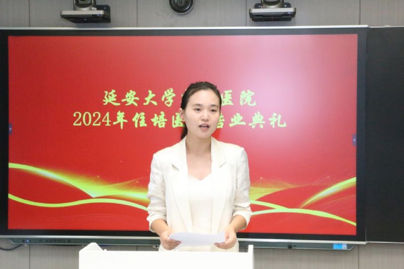 住培醫(yī)師代表紀(jì)陽(yáng)發(fā)言,在發(fā)言中他衷心感謝帶教老師們的陪伴與指導(dǎo),表示會(huì)把這份關(guān)懷轉(zhuǎn)化為未來(lái)工作的動(dòng)力?;仡櫫俗约涸谧∨嗥陂g的學(xué)習(xí)、成長(zhǎng)和喜悅,講述了住培期間難忘和感動(dòng)的瞬間,他在這些歷煉中對(duì)“大醫(yī)精誠(chéng)”的精神有了更深刻的理解,并由衷地感謝醫(yī)院搭建的成長(zhǎng)平臺(tái),表達(dá)了對(duì)所有帶教老師的衷心感謝,今后將努力成為一名眼中有光、胸中有志、心中有愛(ài)、腹中有才有溫度的好醫(yī)生。