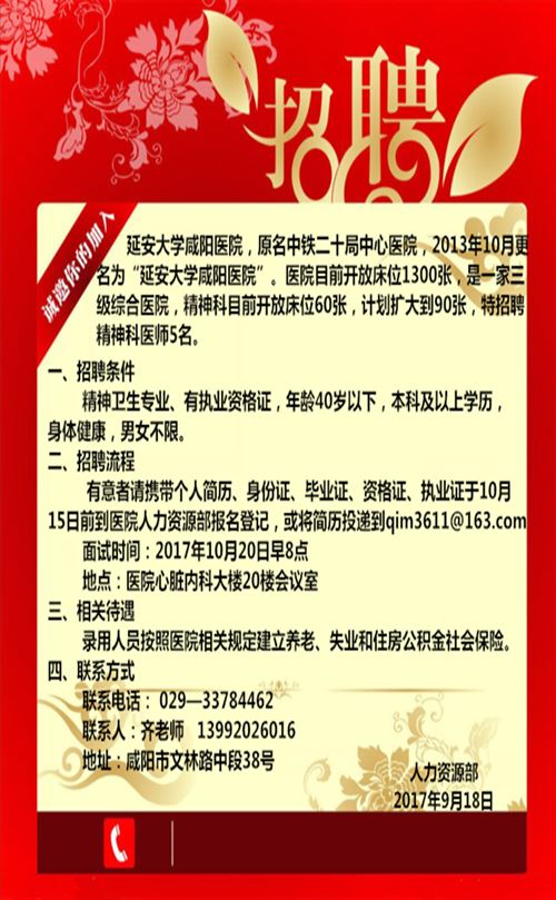 延安大學(xué)咸陽醫(yī)院精神科醫(yī)師招聘啟示