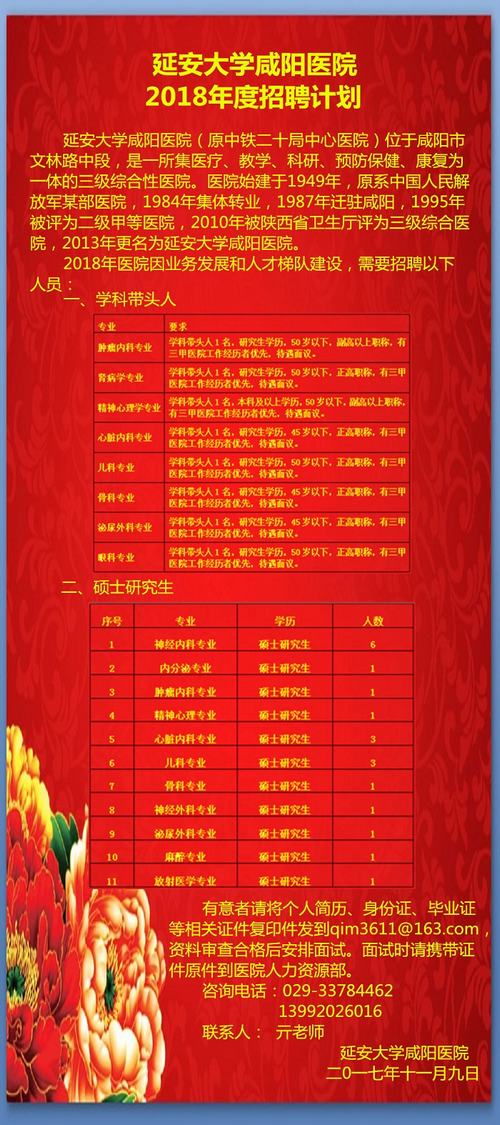 延安大學咸陽醫(yī)院2018年度招聘計劃