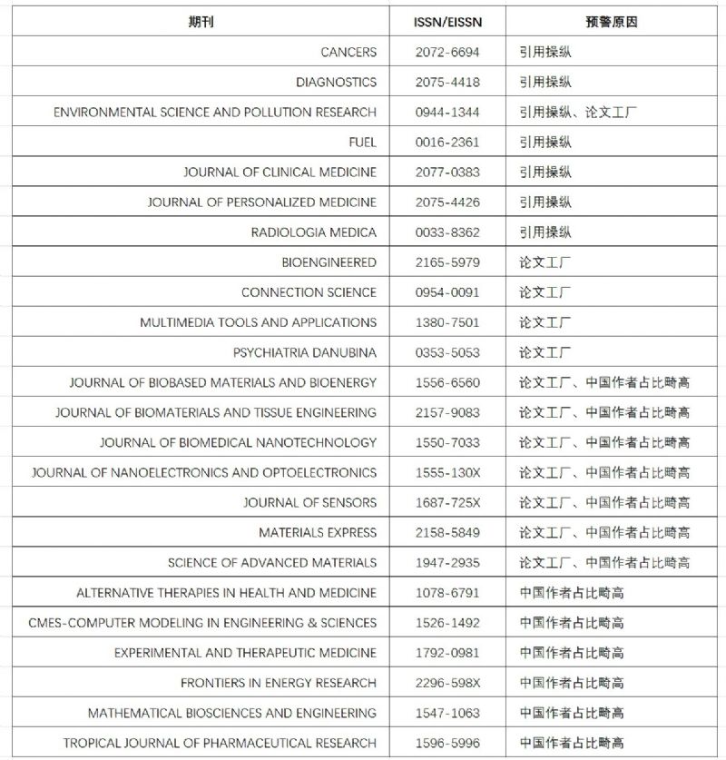 中科院已正式發(fā)布2024年預(yù)警期刊名單
