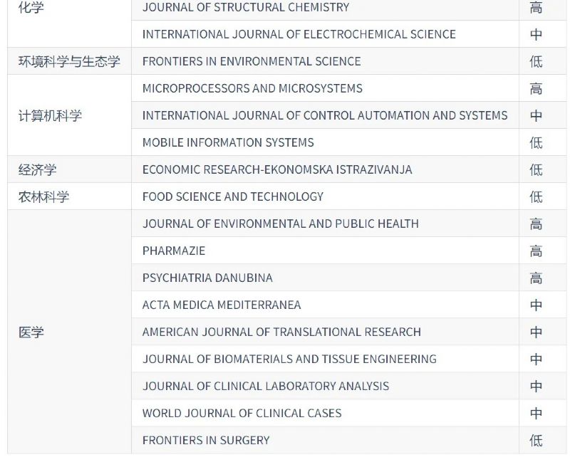 2023年《國(guó)際期刊預(yù)警名單(試行)》: