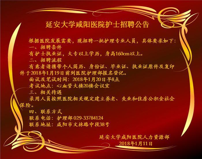 延安大學(xué)咸陽(yáng)醫(yī)院護(hù)士招聘公告