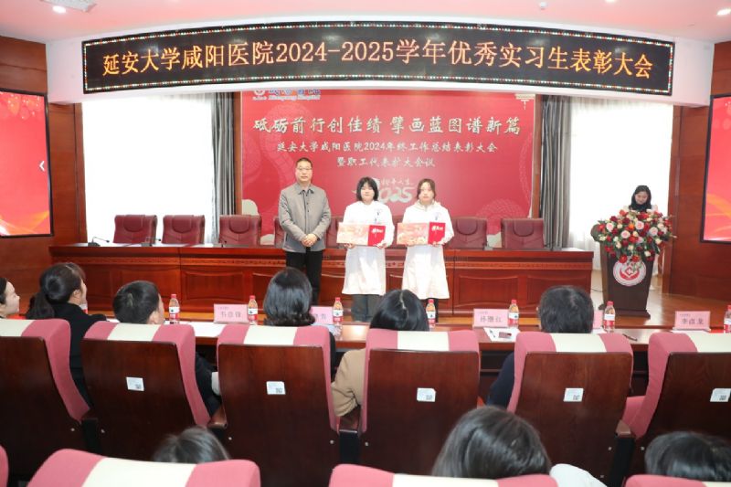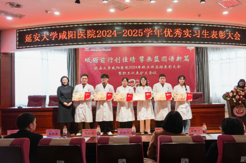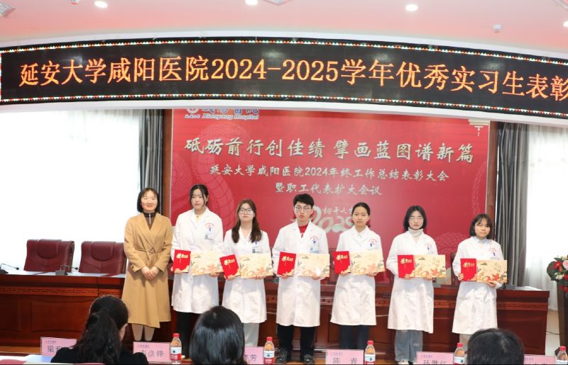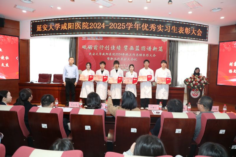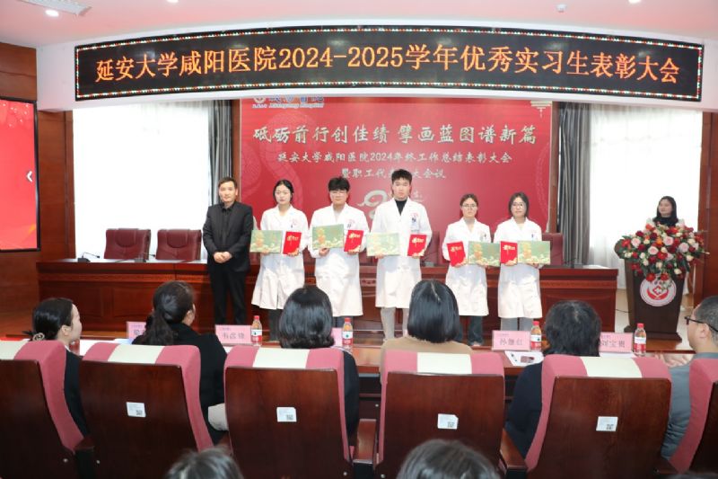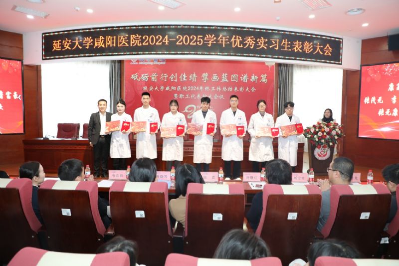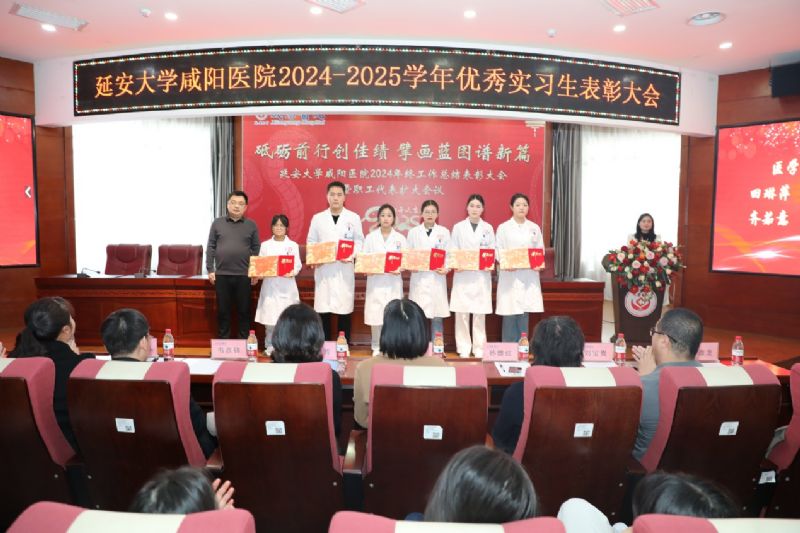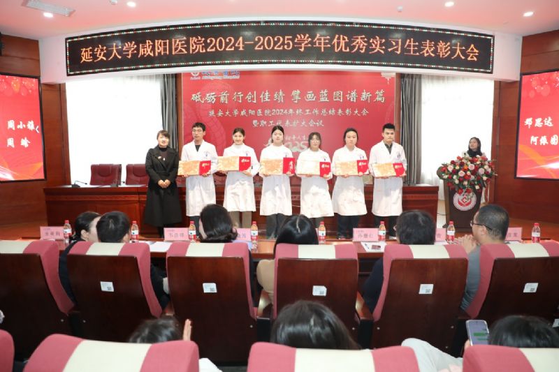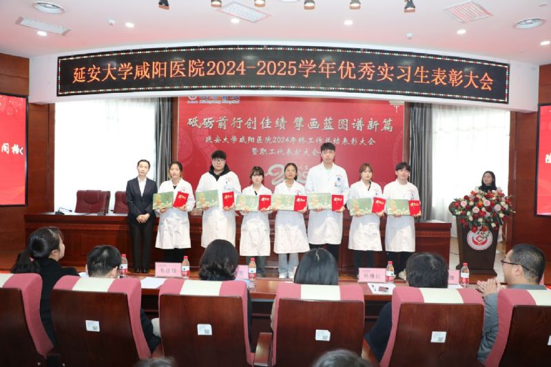 2025年2月26日下午,我院在腦血管病院第三學(xué)術(shù)廳舉辦了“2024-2025學(xué)年優(yōu)秀實(shí)習(xí)生表彰大會(huì)”。延安大學(xué)咸陽(yáng)醫(yī)院副院長(zhǎng)韓曉芳、科研教學(xué)管理中心副主任陳青、口腔病院副院長(zhǎng)韋彥鋒、檢驗(yàn)科主任孫繼紅、康復(fù)醫(yī)學(xué)治療區(qū)主任梁莉娜、藥學(xué)部主任劉寶貴、醫(yī)學(xué)影像科超聲診斷專業(yè)主任王英莉、醫(yī)學(xué)影像科X線診斷專業(yè)副主任李彥龍、醫(yī)學(xué)影像科CT/磁共振診斷專業(yè)副主任張濤、科教部教學(xué)部部長(zhǎng)王紹輝、科教部主管樊高俠以及實(shí)習(xí)生代表230余人參加了此次活動(dòng)。本次會(huì)議由科教部實(shí)習(xí)管理老師徐揚(yáng)主持。