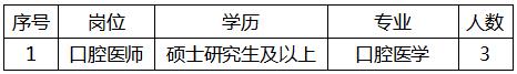 因延安大學咸陽醫(yī)院成立口腔病院,現(xiàn)面向社會招聘以下口腔醫(yī)師三名,具體要求如下: