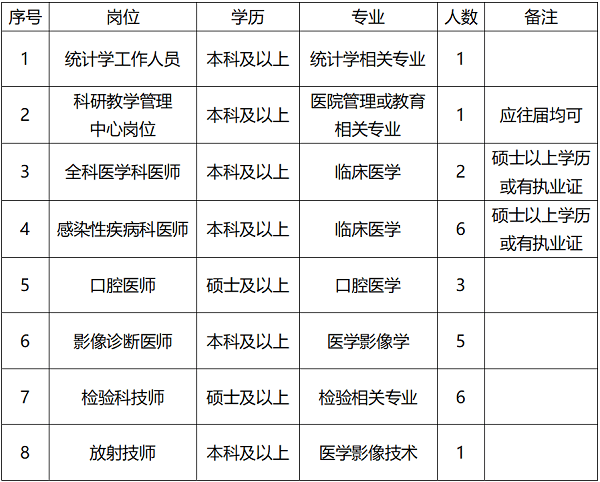 根據(jù)醫(yī)院發(fā)展需要,延安大學咸陽醫(yī)院現(xiàn)面向社會招聘各專業(yè)工作人員,具體要求如下: